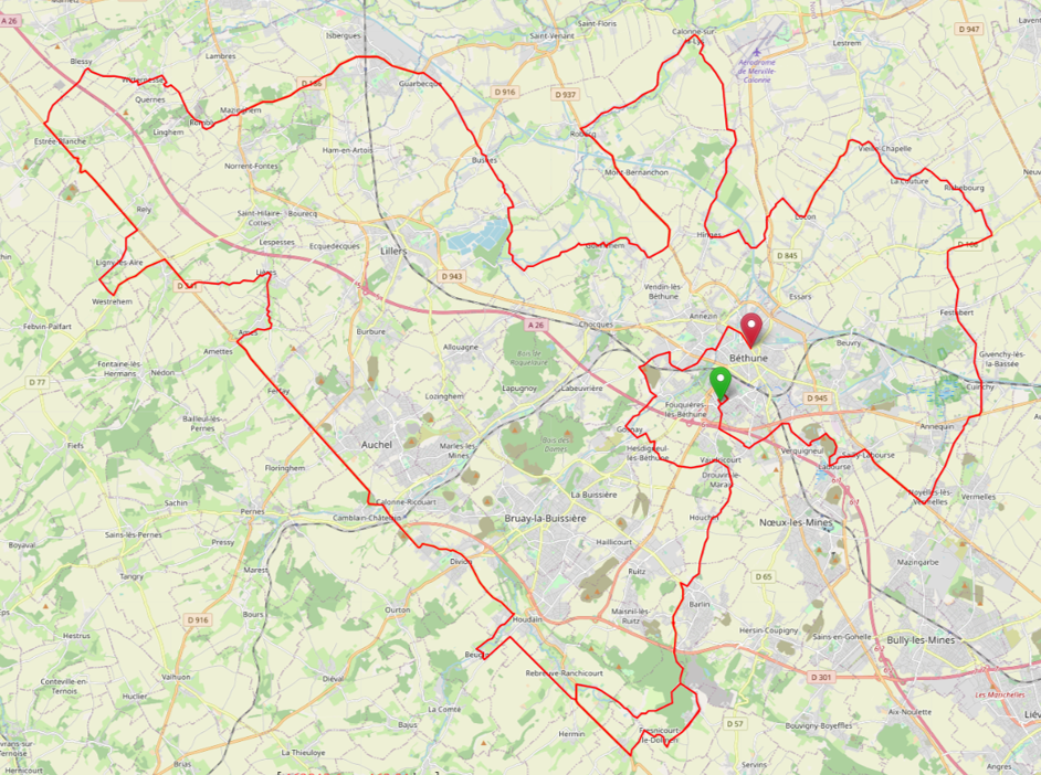 Le départ « fictif » sera situé à Béthune - Avenue de Londres devant l’hôtel communautaire de la Communauté d’agglomération - à 12h20 pour un parcours de 7kms.
