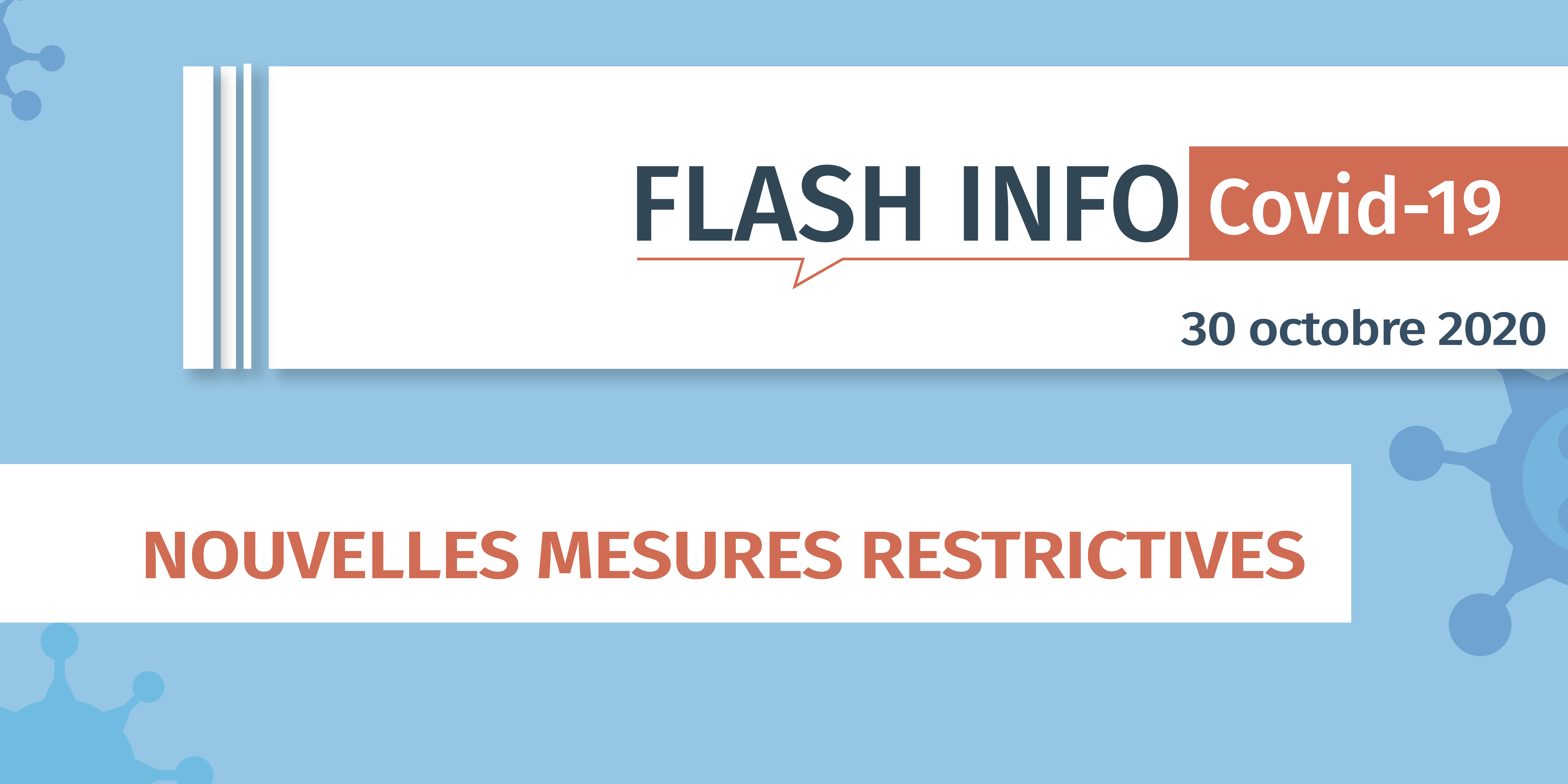 Info Covid-19 : Mesures sanitaires nationales Afin de lutter contre la progression du virus, le gouvernement adapte les mesures sanitaires. Publié le 29 octobre 2020 Retrouvez ci-dessous les principales mesures annoncées le jeudi 10 décembre 2020 par le gouvernement. Precedent Retour à la liste Suivant