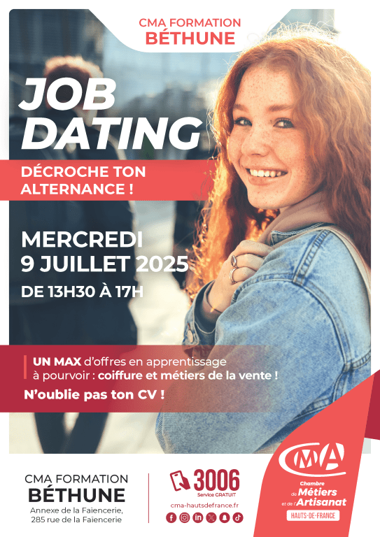 Job Dating : Décroche ton alternance dans l'artisanat à CMA Formation Béthune.