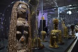 Il y a investi le rez-de-chaussée, avec des oeuvres produites autour du monde : sculptures réalisées au Cameroun, céra¬miques au Portugal, qui vous rappelleront tantôt Sinbad le Marin, tantôt les butins de pirates, tantôt les masques incas ou le Veau d’or. Au sous-sol, l’artiste dévoilera sa collection d’objets, figurines, robots ou maquettes : un véritable trésor personnel qui vous fera sans doute penser aux lingots qui pouvaient être précieusement gardés dans les coffres de la Banque de France.
