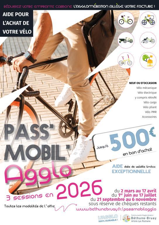 La première session 2026 du Pass'Mobil'Agglo est organisée du 2 mars à partir de 9h au 17 avril. Deux autres sessions sont prévues du 1er juin au 17 juillet et du 21 septembre au 6 novembre (sous réserve de disponibilité des chèques).