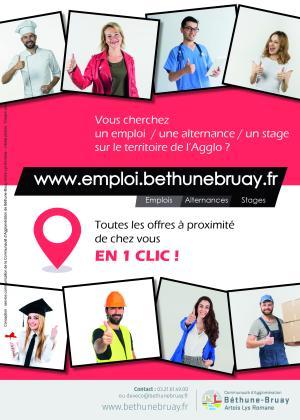 Rendez-vous sur emploi.bethunebruay.fr ou en cliquant sur la rubrique dédiée "Trouver un emploi" en page d'accueil de ce site internet.
