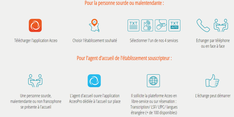 Dans la continuité de la dynamique de la Charte Handicap et afin de favoriser l’accessibilité des services publics à tous et notamment aux personnes sourdes et malentendantes, la Communauté d’agglomération a fait le choix d’adhérer au dispositif Acceo. Sur le territoire, le choix a été fait de rendre accessibles à la fois les établissements intercommunaux mais aussi l’ensemble des services communaux (mairie et éventuellement ses annexes, médiathèque, CCAS, agence postale communale, crèche municipale, services techniques…).