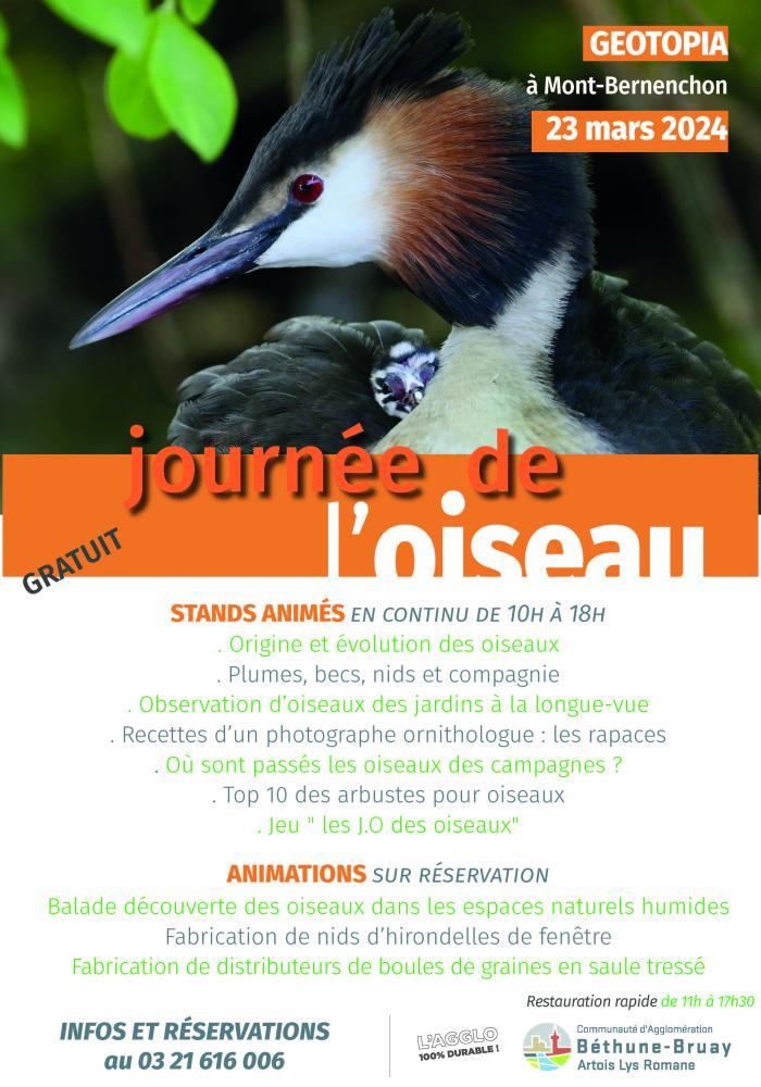 De 10h à 18h, plongez au cœur du monde aviaire avec une multitude d'activités et de stands accessibles librement. Découvrez l'origine et l'évolution des oiseaux, explorez les mystères des plumes, des becs et des nids, et observez de près les oiseaux des jardins grâce à des longues-vues expertes.