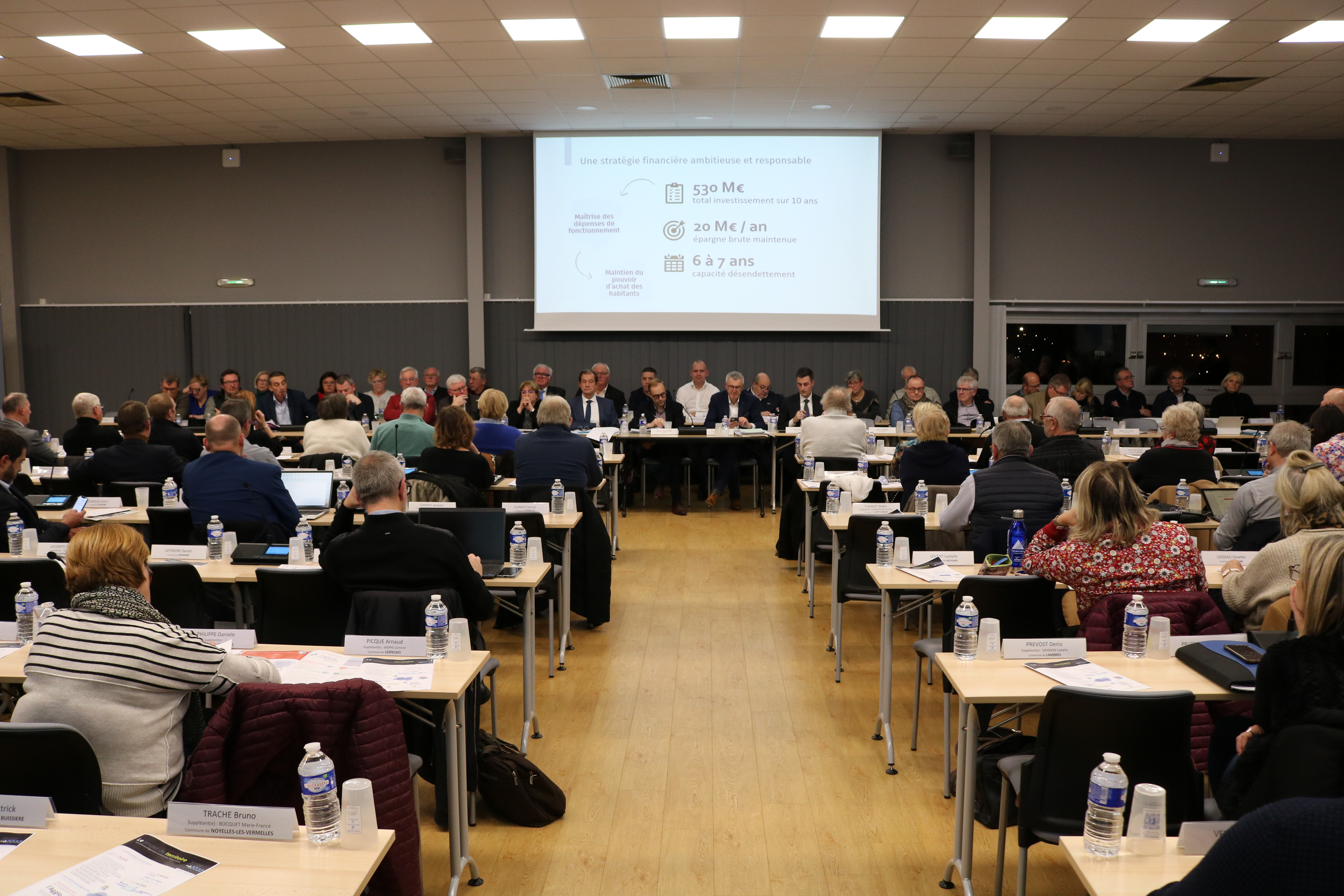 C’est un pacte de confiance pour les 100 communes de notre intercommunalité  : l’affirmation d’une communauté de destins, un objectif commun. C'est l’opportunité de regarder devant, de laisser derrière nos divergences pour nous concentrer sur l’avenir, le nôtre bien sûr mais aussi celui de nos enfants [...] Ce document cadre reprend fidèlement les valeurs auxquelles nous sommes tous attachés : l’humanisme, la fraternité, la proximité, la responsabilité, la solidarité et le courage et le travail [...] Nous serons des acteurs de ce territoire, des acteurs clés. Je souhaitais avoir ces quelques mots pour que vous preniez la mesure de ce qui m’apparaît comme un moment historique qu’on mettra dans un coin de notre mémoire, mais c’est ce n’est pas un moment anodin. On pourra se dire quelle que soit la conclusion nous étions là, on l'a souhaité et on l’a mis en œuvre ensemble.