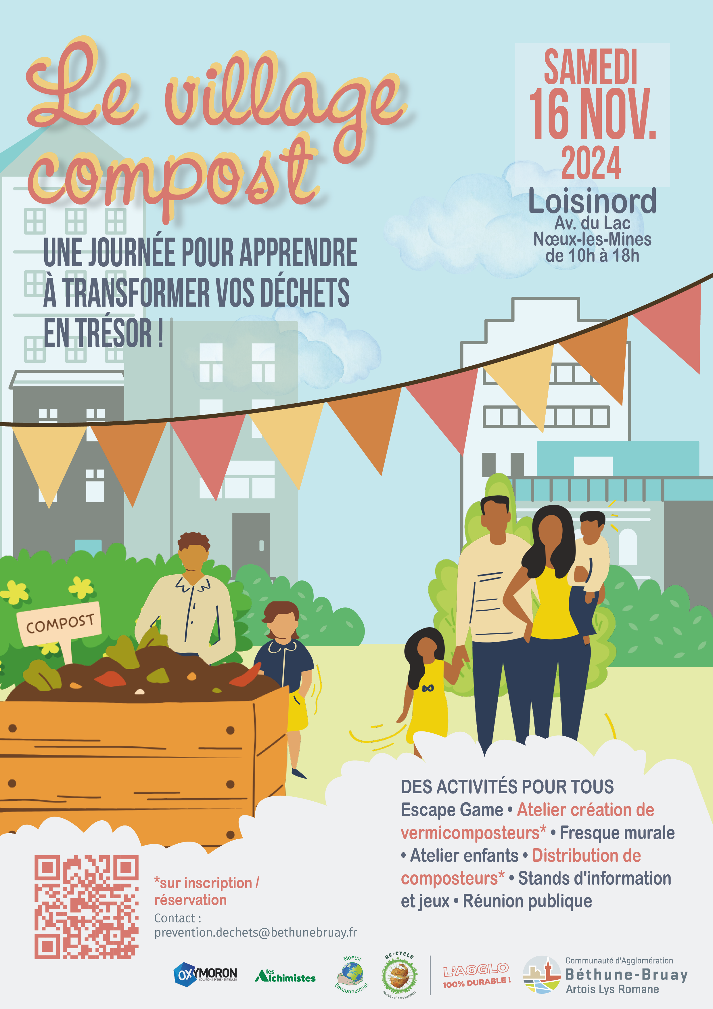 L'Agglo Béthune-Bruay vous invite au Village compost, une journée dédiée à la valorisation des biodéchets et aux bonnes pratiques écologiques. Rejoignez-nous pour découvrir des solutions simples et participer à des ateliers créatifs, le tout dans une ambiance ludique et conviviale !