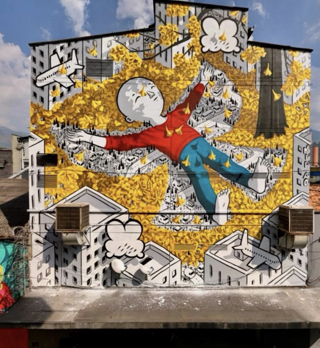 Francesco Camillo Giorgino, allias Millo est un artiste muraliste italien reconnu pour ses fresques monumentales en noir et blanc, animées de touches de couleur. Il met en scène des personnages rêveurs dans des décors urbains denses, traduisant des émotions comme la tendresse, l’isolement ou l’espoir. Son style, à la fois poétique et ludique, amuse autant qu’il touche : ses œuvres éveillent les consciences. Inspiré par la bande dessinée, Millo joue avec l’architecture pour créer des mondes centrés sur l’humain.